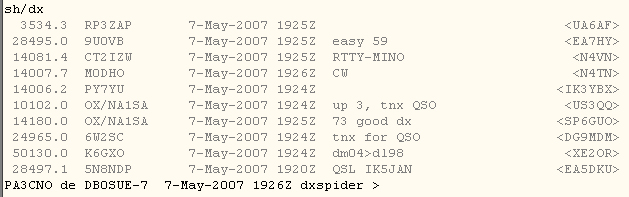 | SHOW/DX | <callsign> or <prefix> | Interrogate the spot database |