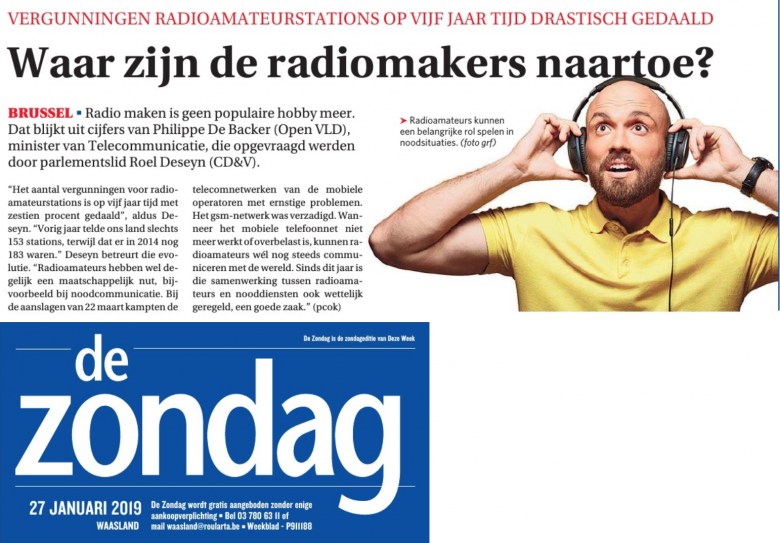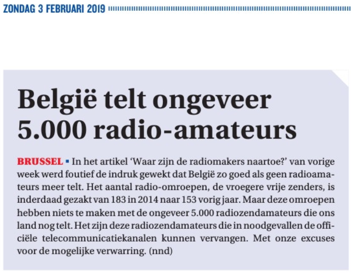 Onder de kop "Vergunningen radioamateurs op 5 jaar tijd drastisch gedaald" verkondigde de krant "De Zondag" op 27 januari zeer dramatisch dat er nog maar 153 radioamateurs waren in België!